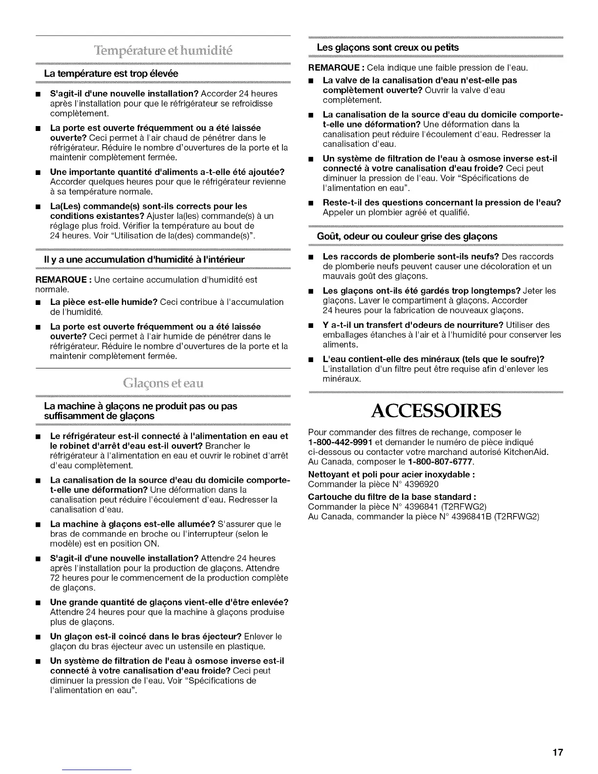 ci-dessous ou contacter votre marchand autorise KitchenAid.