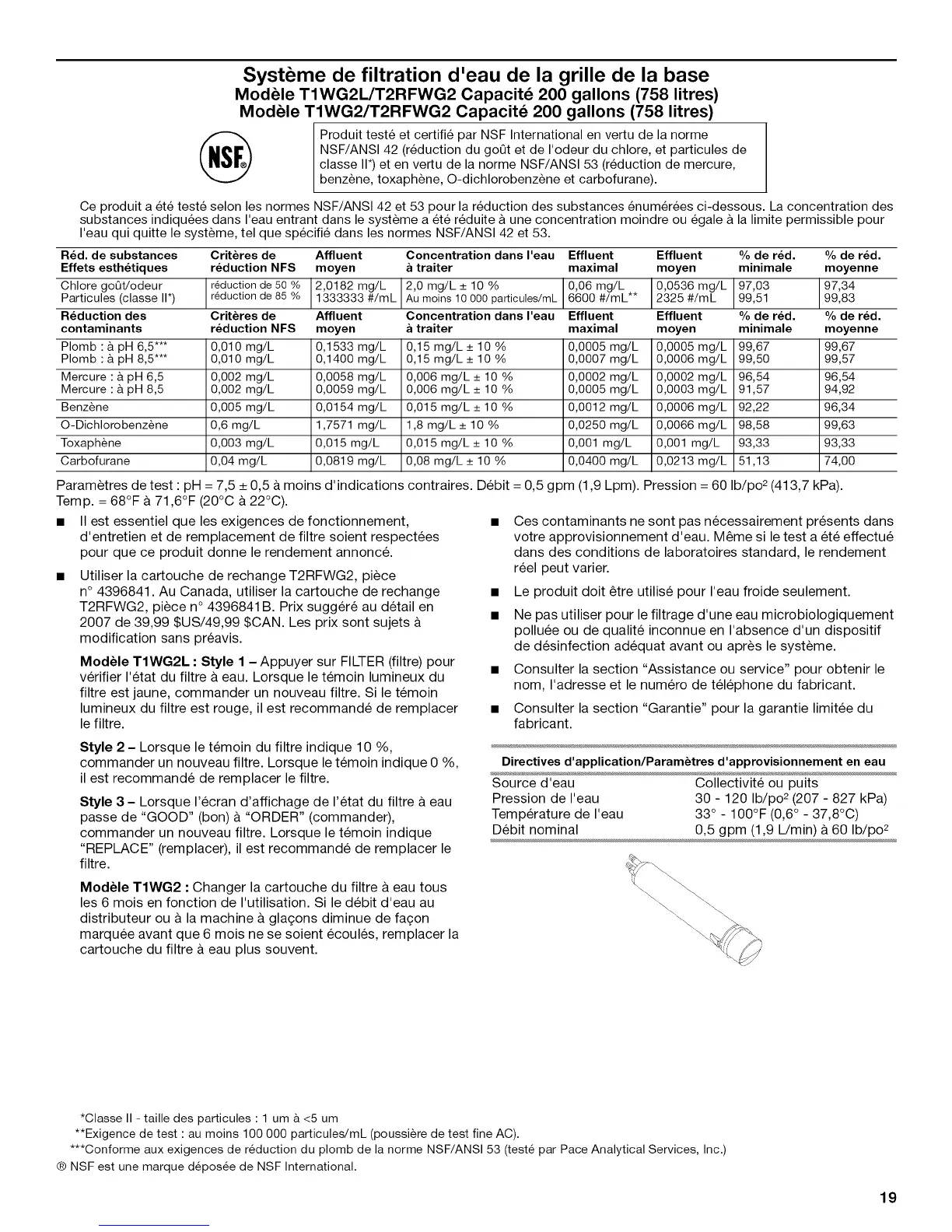 Ce produit a et6 teste selon les normes NSF/ANSI 42 et 53 pour la reduction des substances 6num@ees ci-dessous. La concentration des