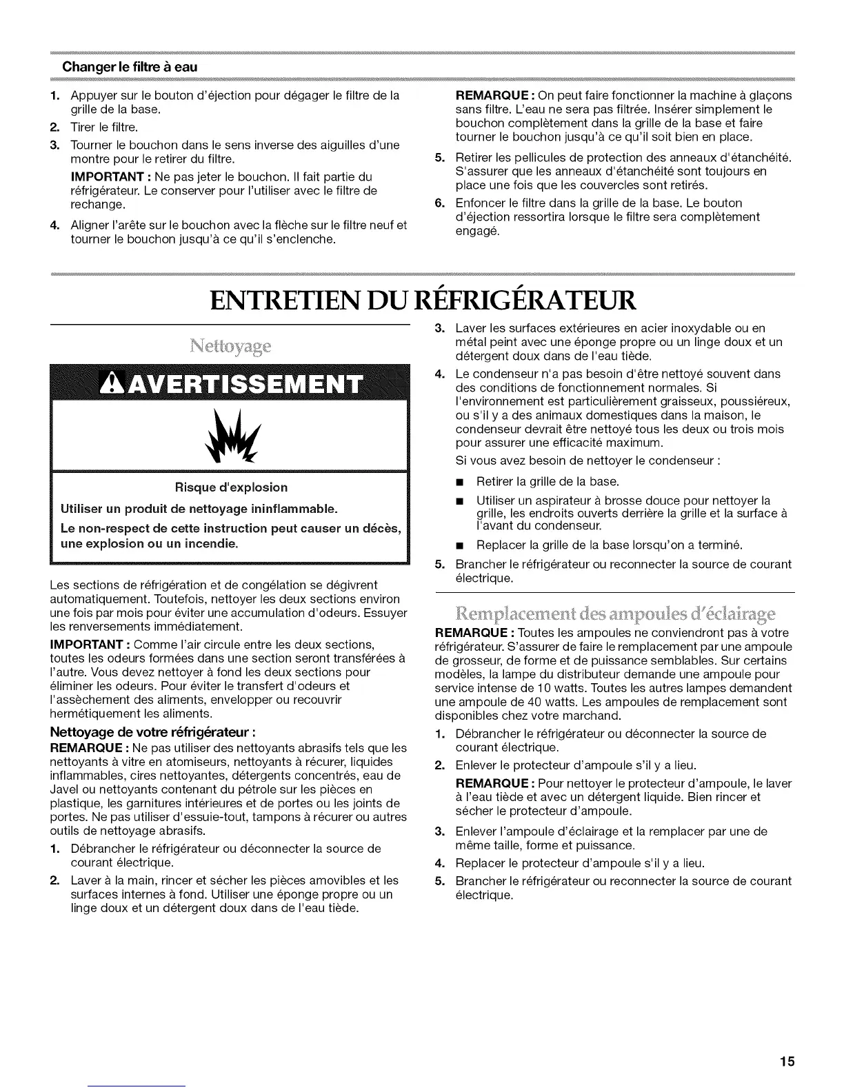 refrigerateur. S'assurer de faire le remplacement par une ampoule