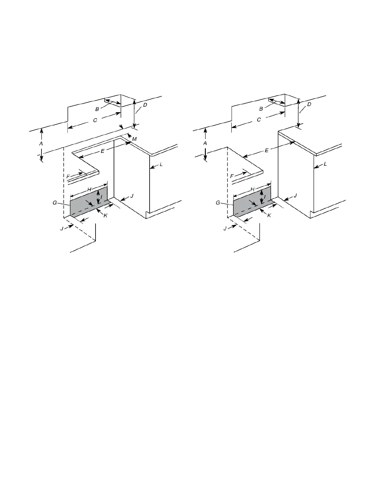 Les dimensions de l’ouverture entre les placards correspondent à une installation entre des placards de 25" (64,0 cm) de profondeur,