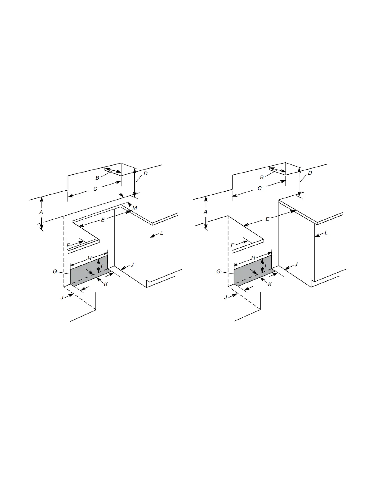 F. 5" (12.7 cm) minimum clearance from both sides of range to side wall
