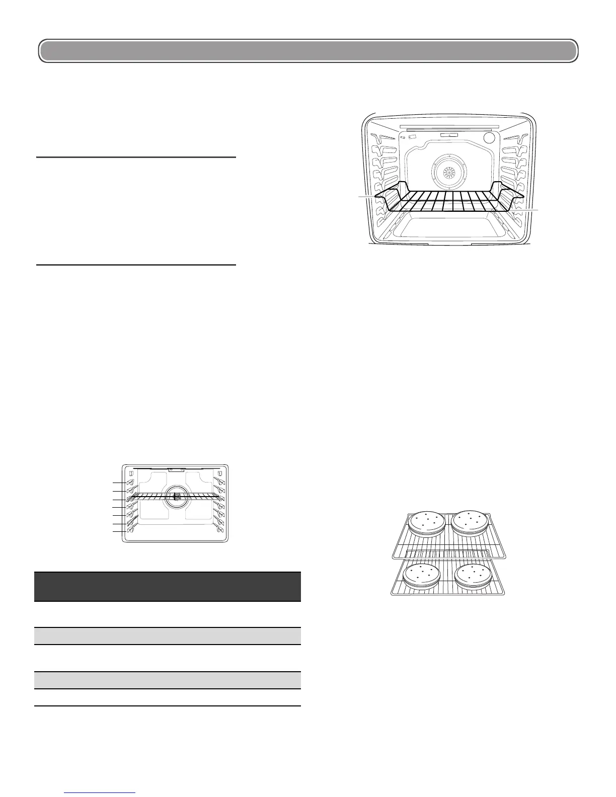 Cuisson sur 3 grilles (avec convection) : Utiliser les positions 2 et 7