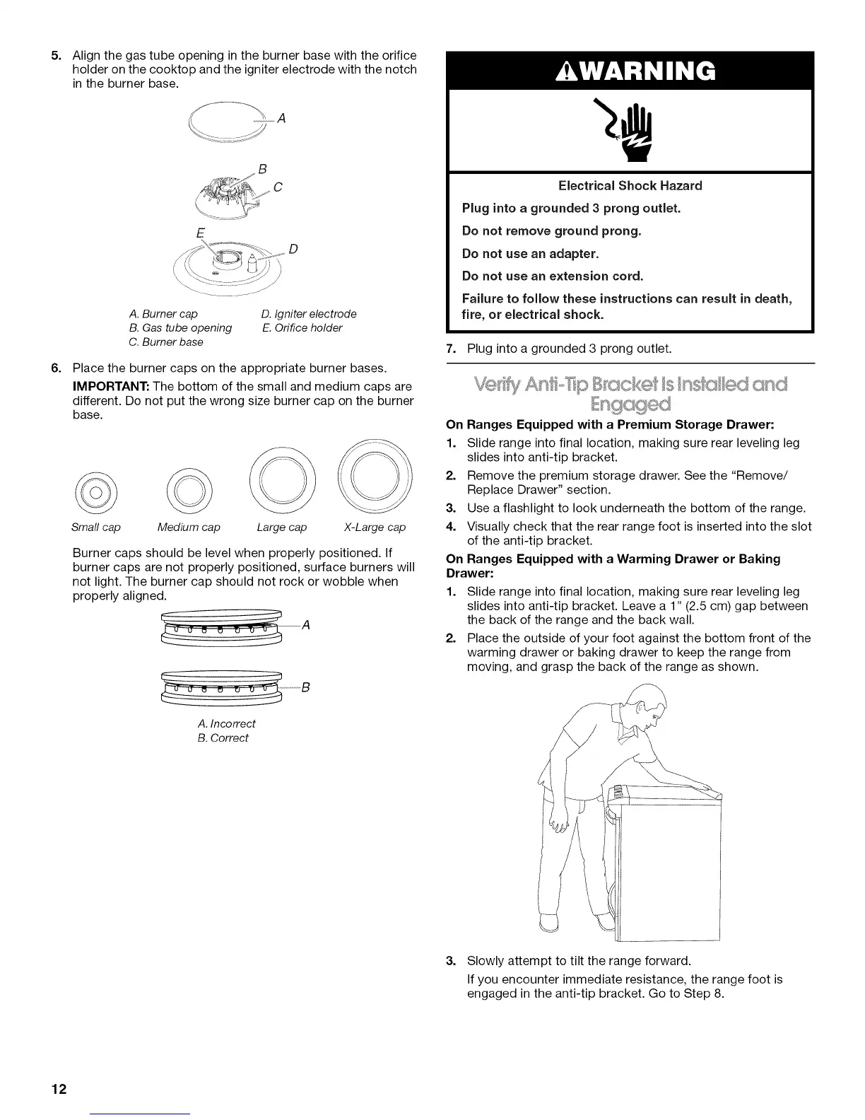 not light. The burner cap should not rock or wobble when