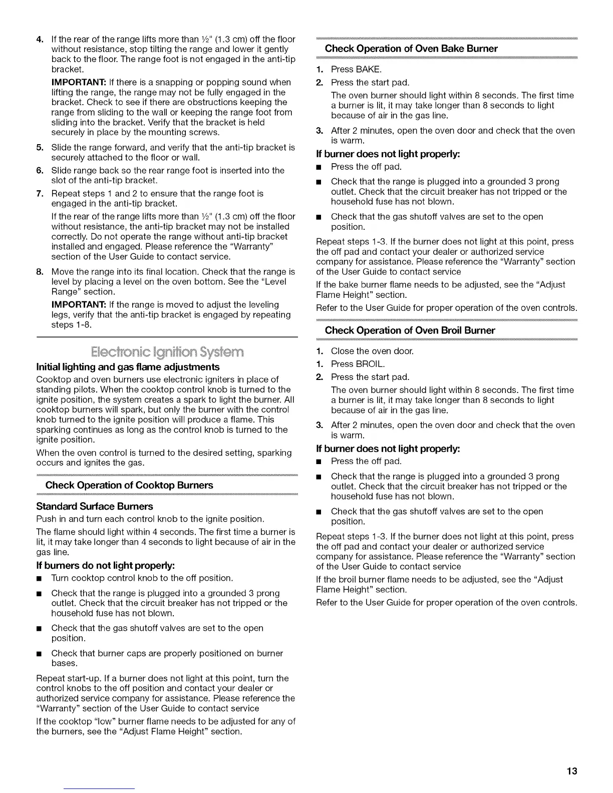 correctly. Do not operate the range without anti-tip bracket