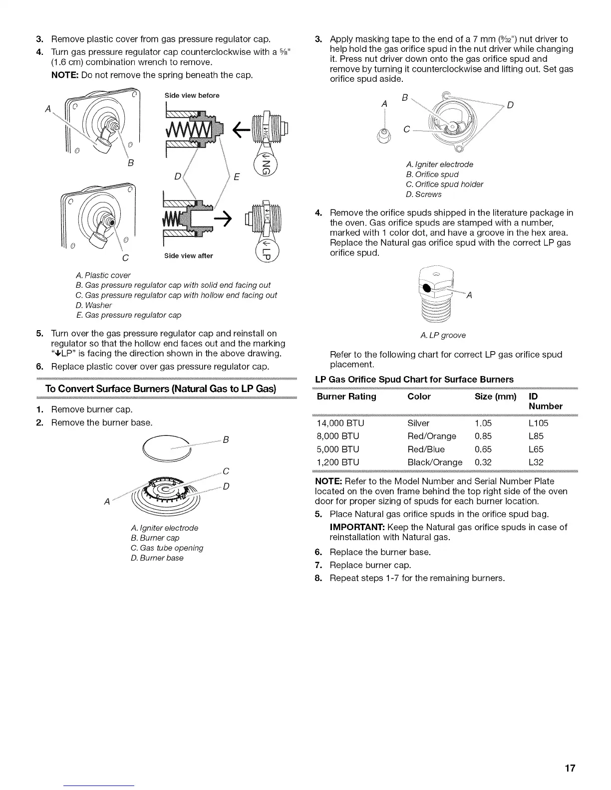 To Convert Surface Burners (Natural Gas to LP Gas)