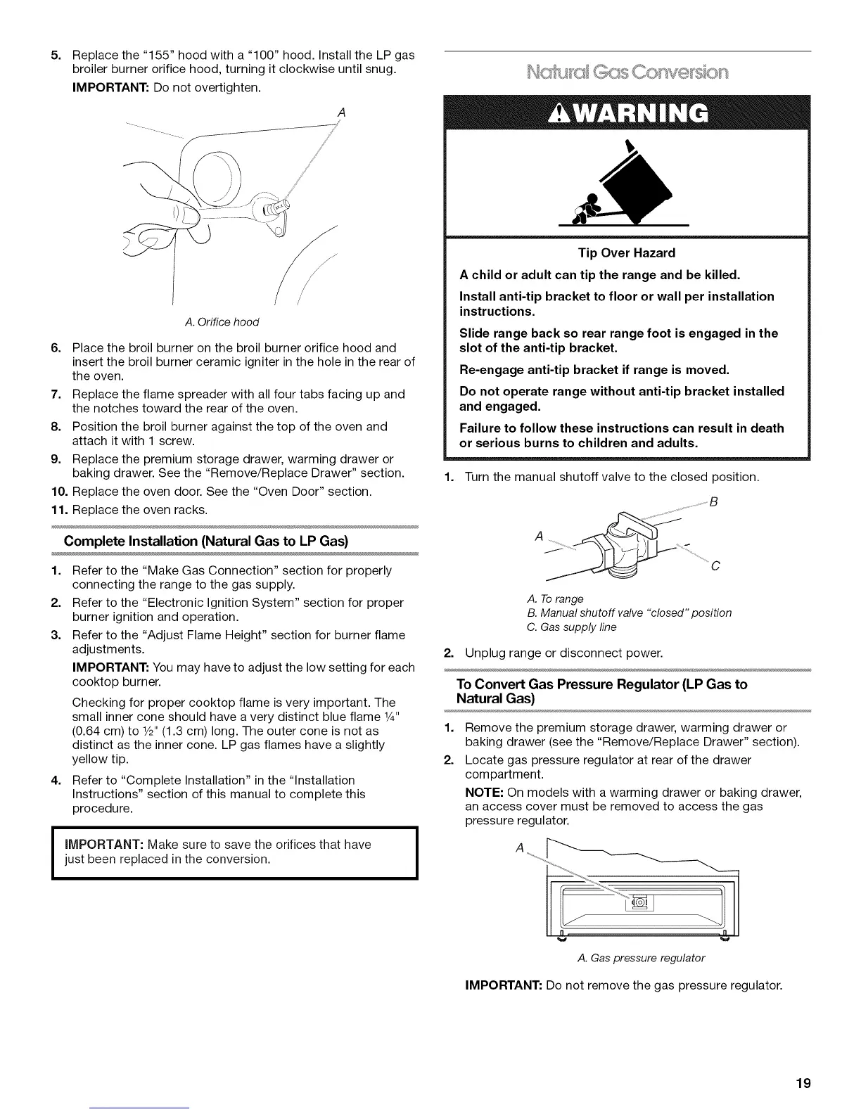 Replace the "155" hood with a "100" hood. Install the LP gas