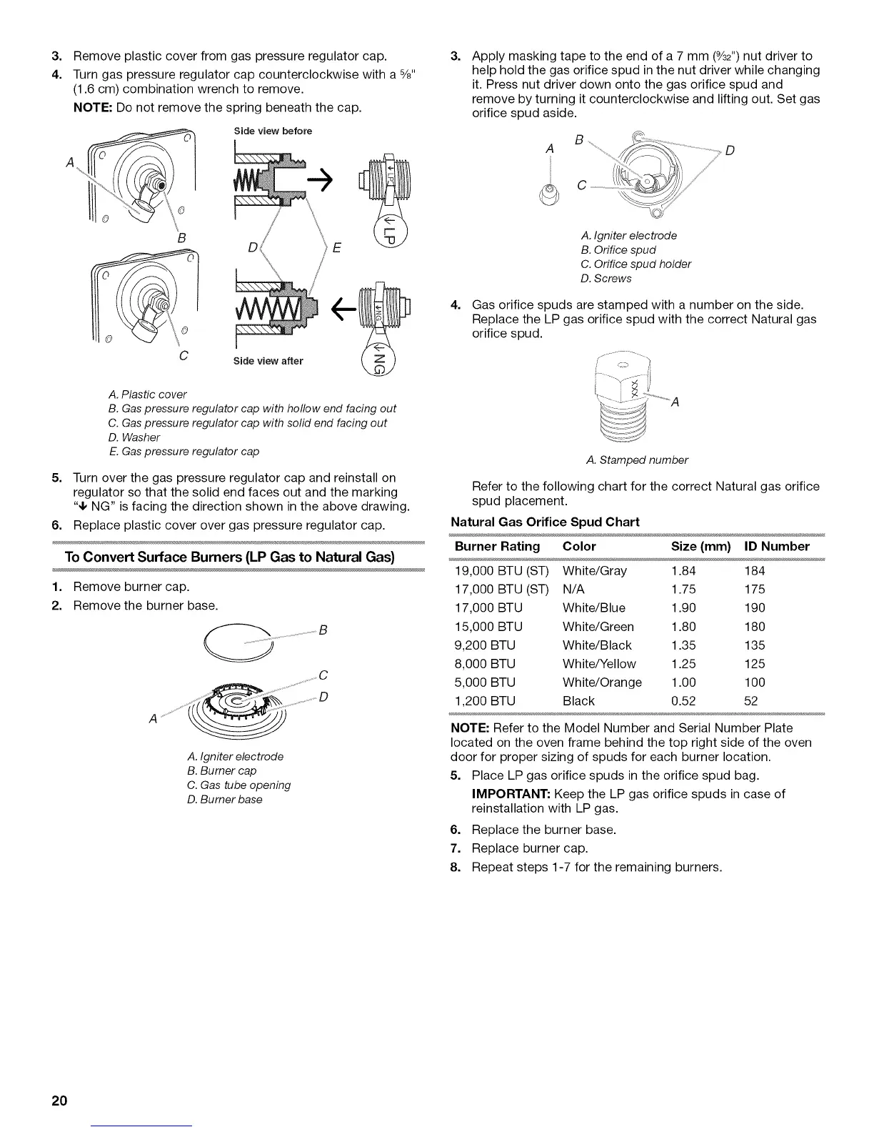 To Convert Surface Burners (LP Gas to Natural Gas)