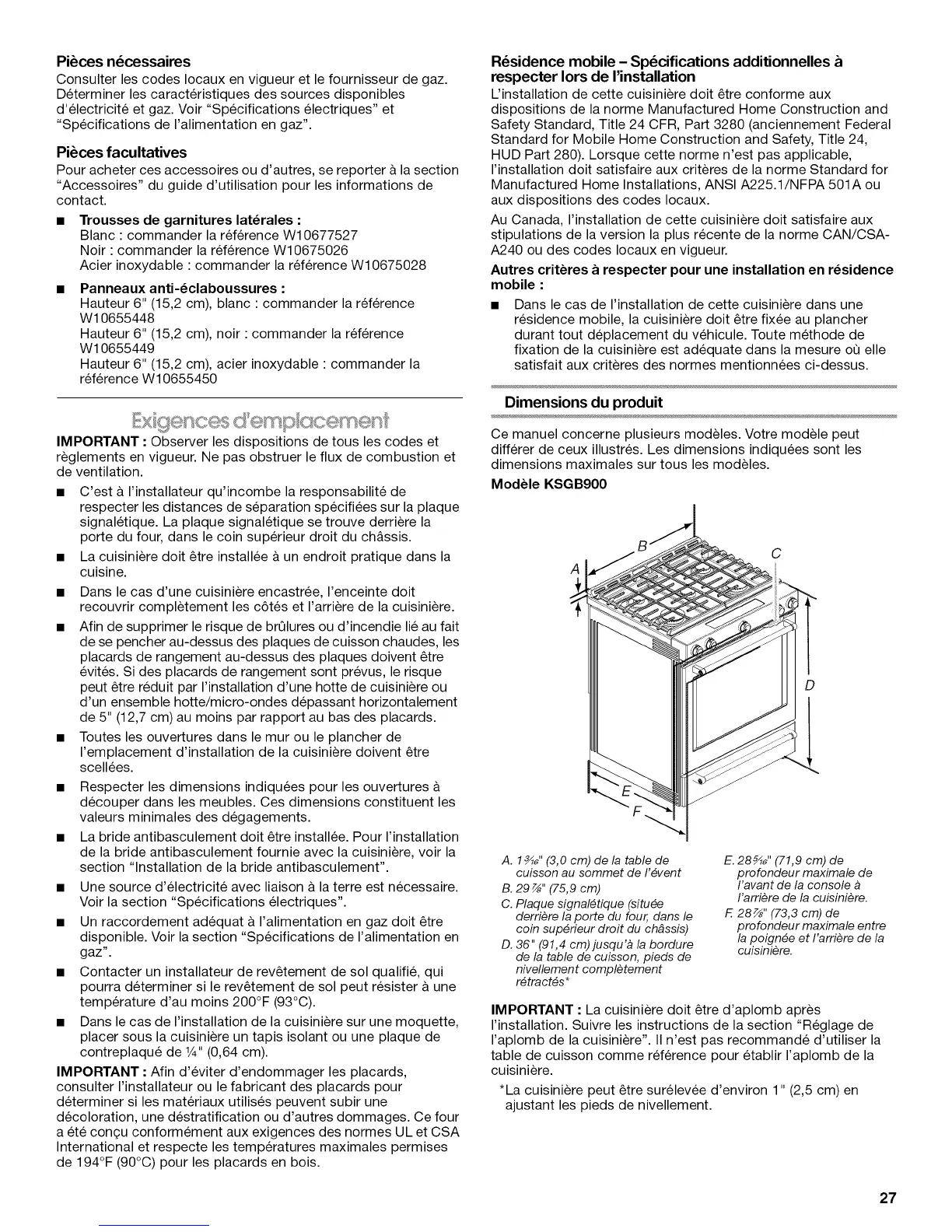 Au Canada, I'installation de cette cuisiniere doit satisfaire aux