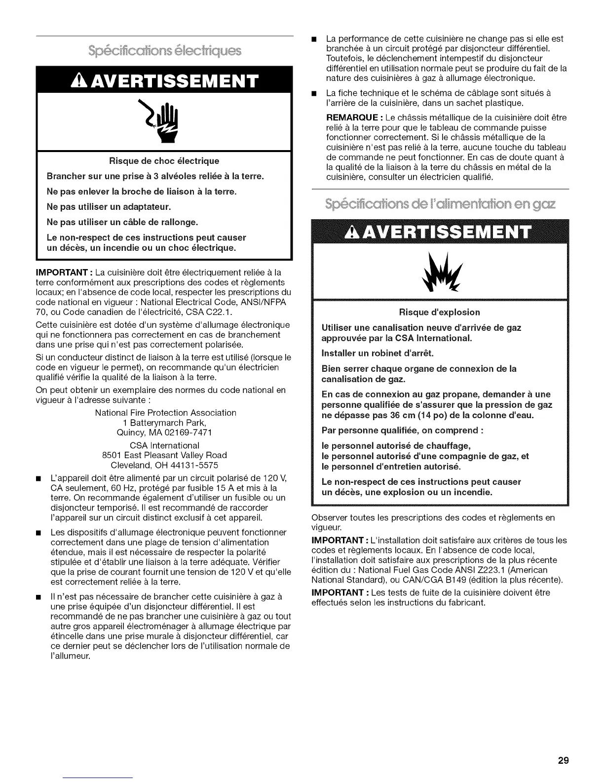 70, ou Code canadien de I'electricit6, CSA C22.1.