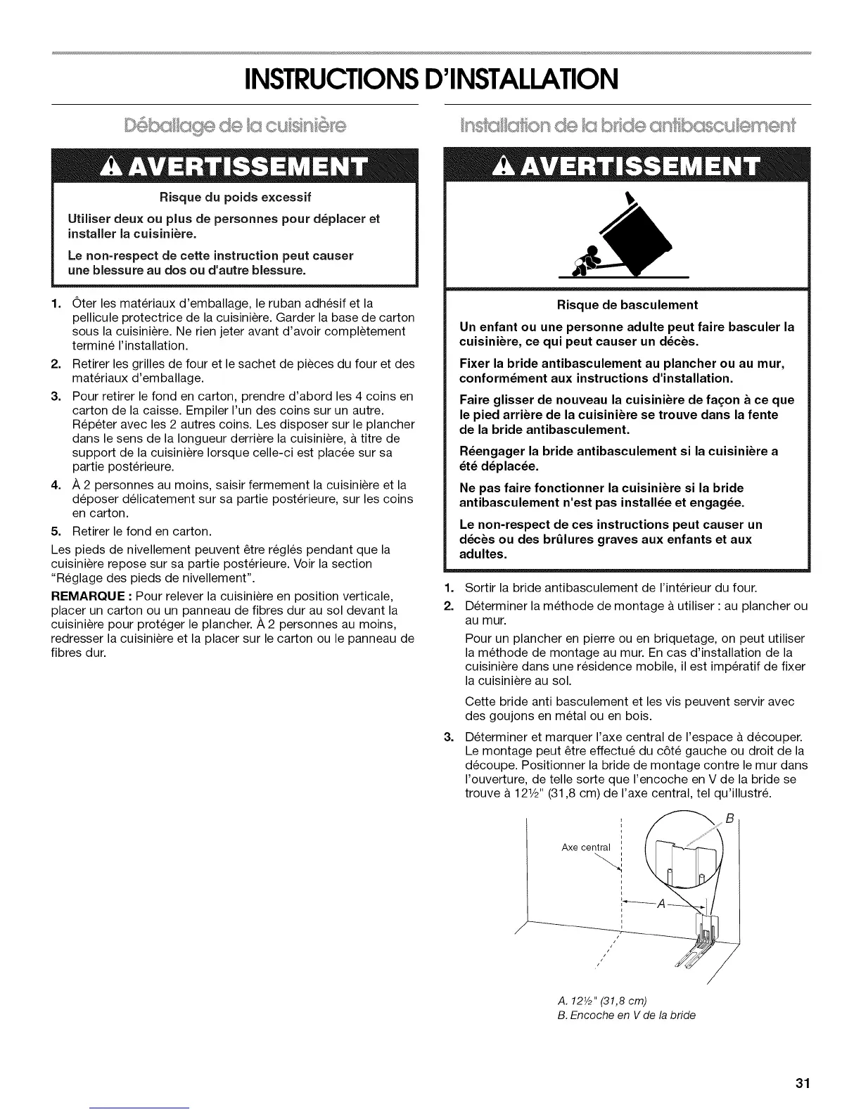 trouve a 121/2'' (31,8 cm) de I'axe central, tel qu'illustre.