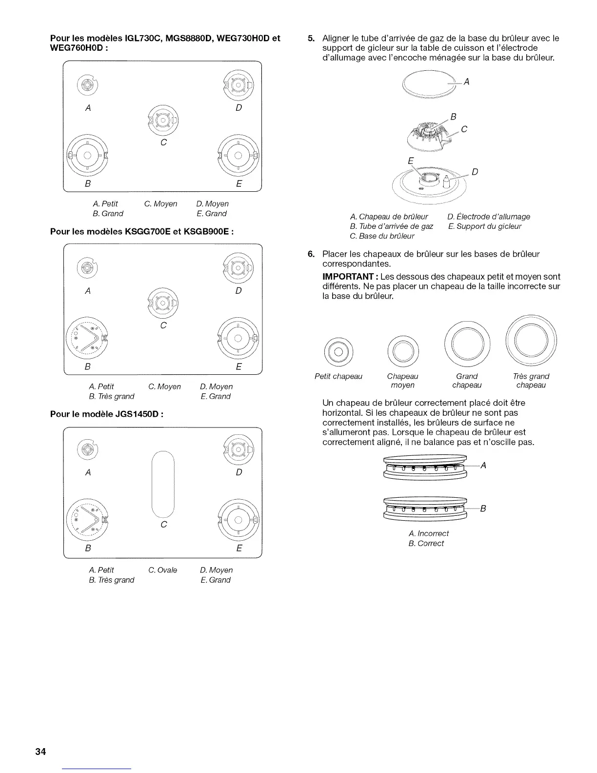 A. Chapeau de brOleur D. Electrode d'allumage