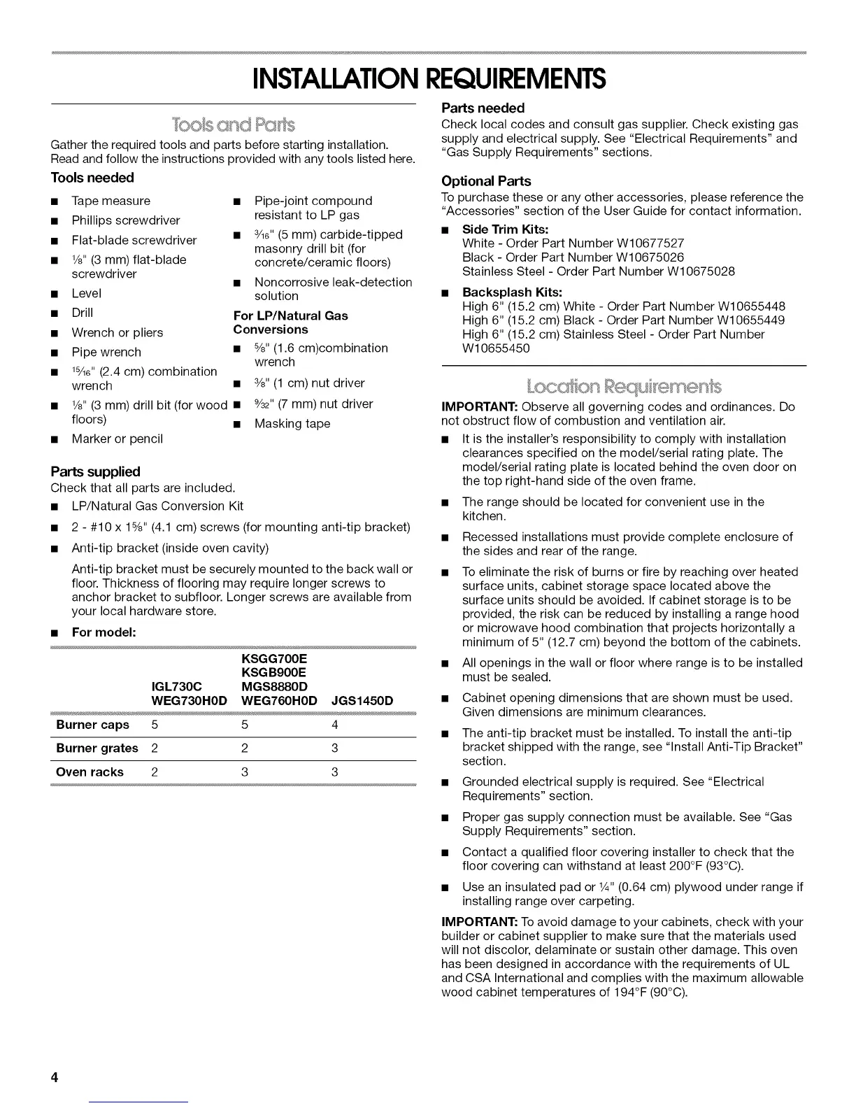 • 2 - #10 x 1%" (4.1 cm) screws (for mounting anti-tip bracket)