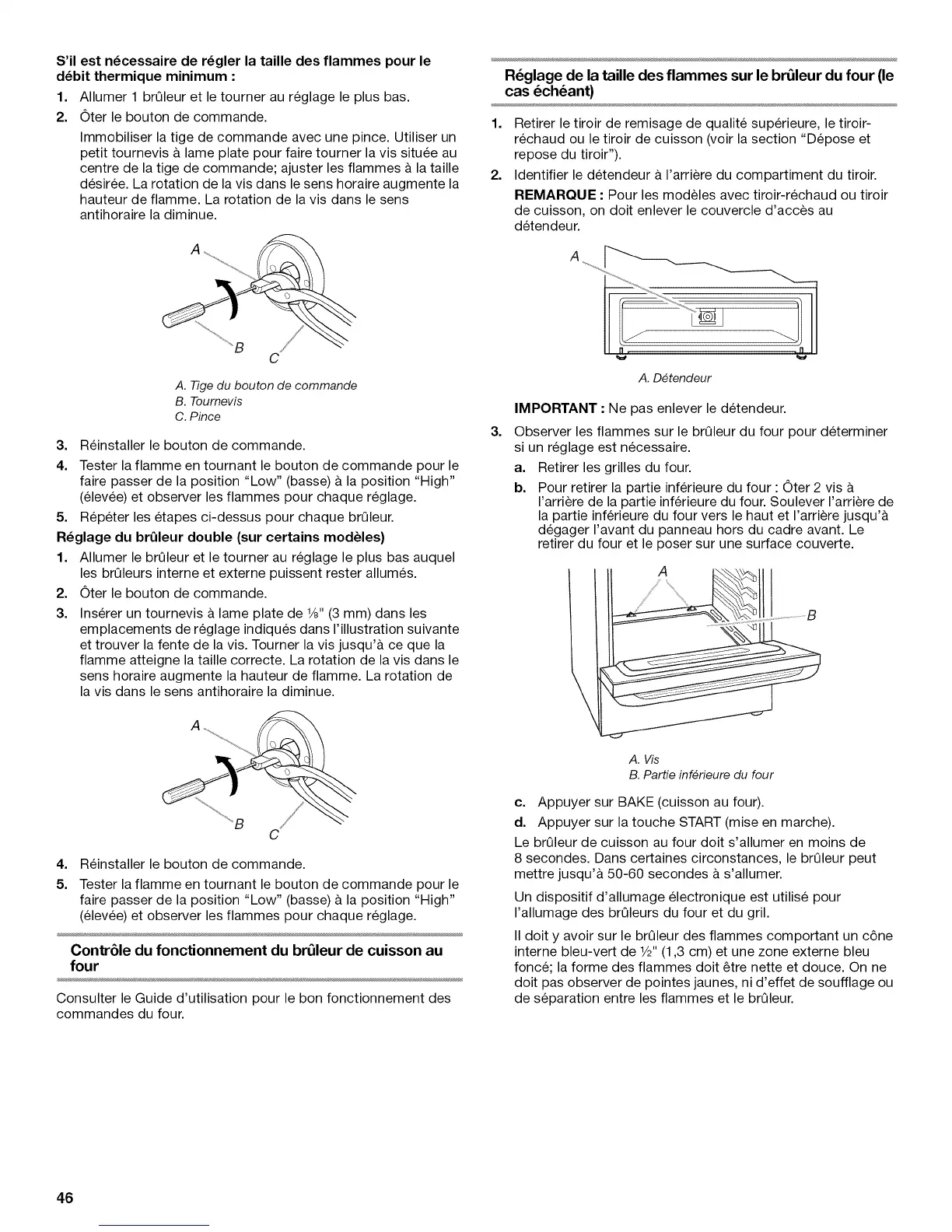 R6glage de la taille des flammes sur le br_leur du four (le