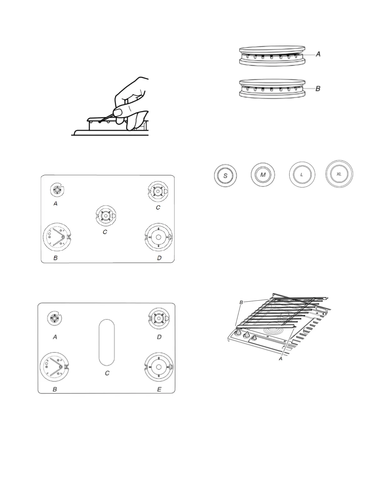 est marquée d’une lettre indiquant la taille du brûleur. Voir les