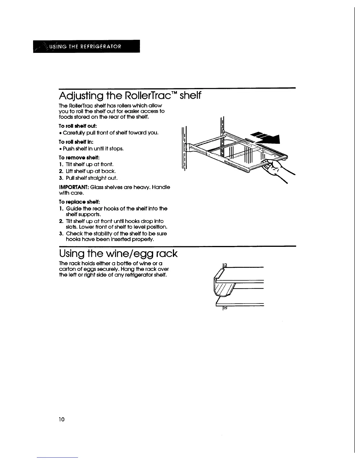 Adjusting the RollerTracT" shelf