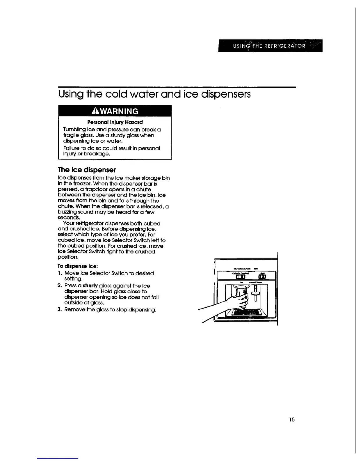 and crushed Ice. Before dispensingice,