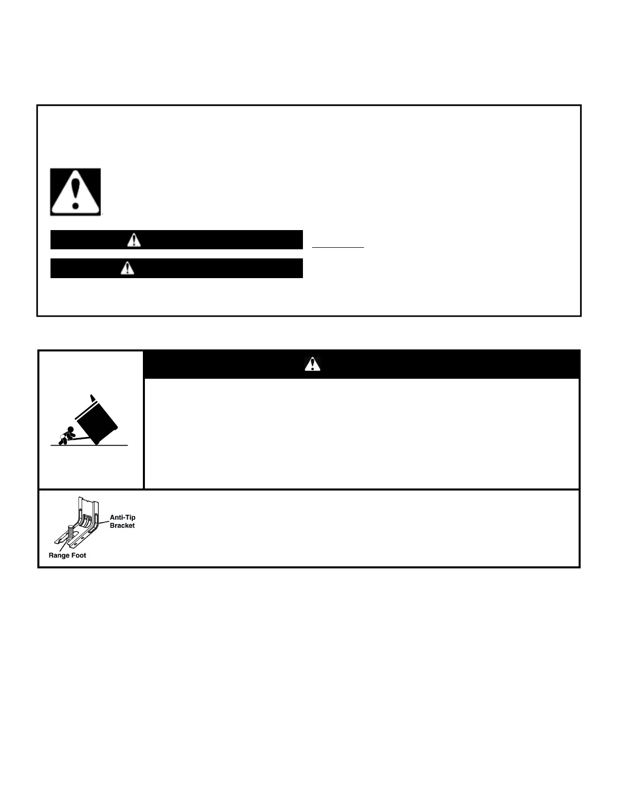 Do not operate range without anti-tip bracket installed and engaged.