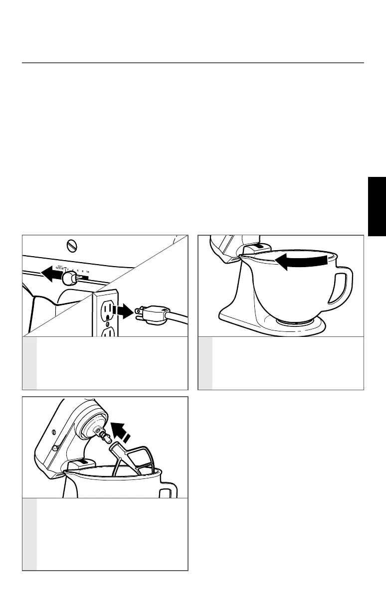 entre el batidor y el tazón. Cuando están en la posición correcta, la manija y el pico
