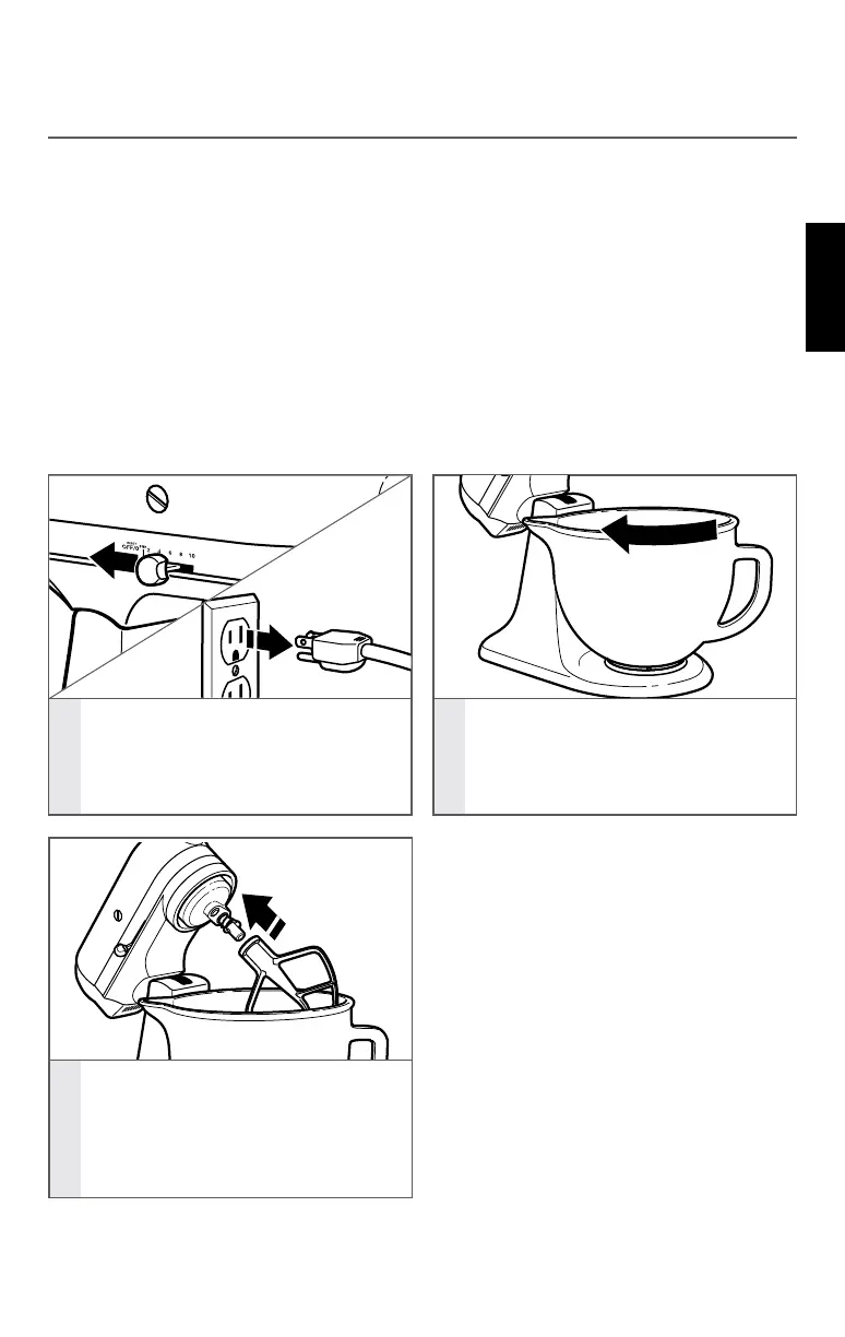 l’espace entre le batteur et le bol. Une fois positionnés correctement, la poignée et le bec