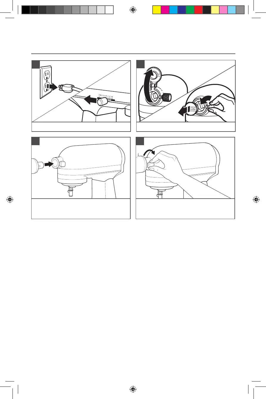 Unplug and turn the Stand Mixer off (0).