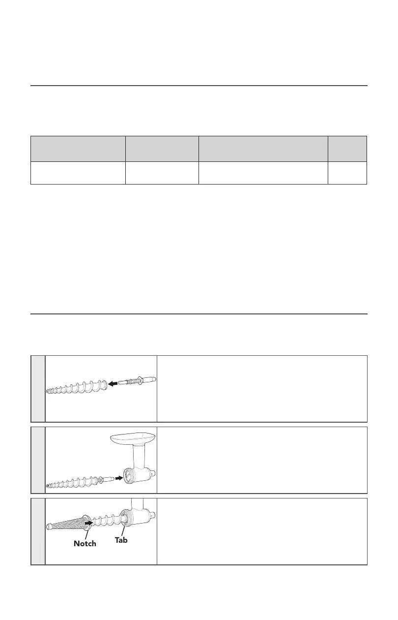 FRUIT/VEGETABLE STRAINER ATTACHMENT CHART