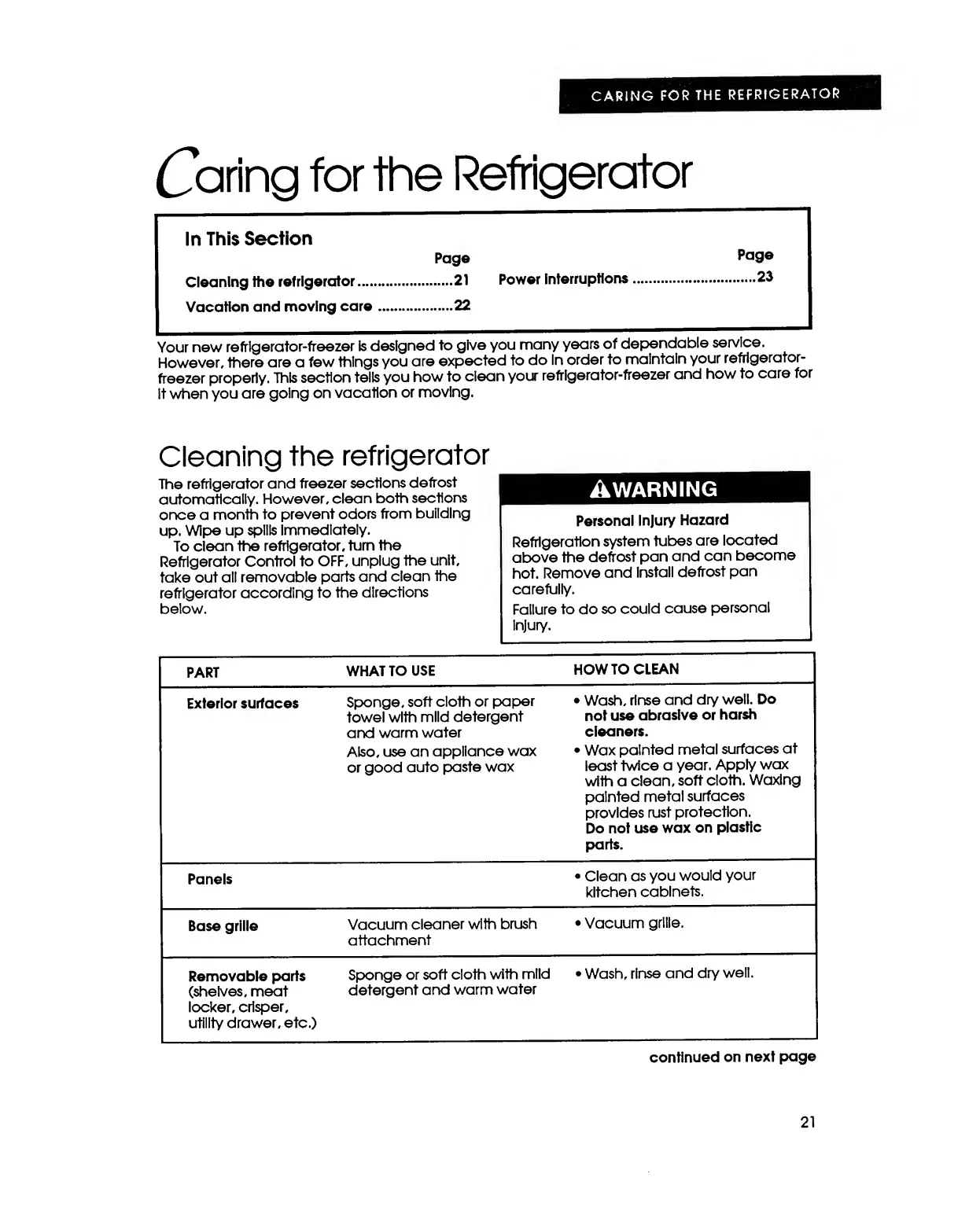 KitchenAid KSRB22Q - Caring for the Refrigerator