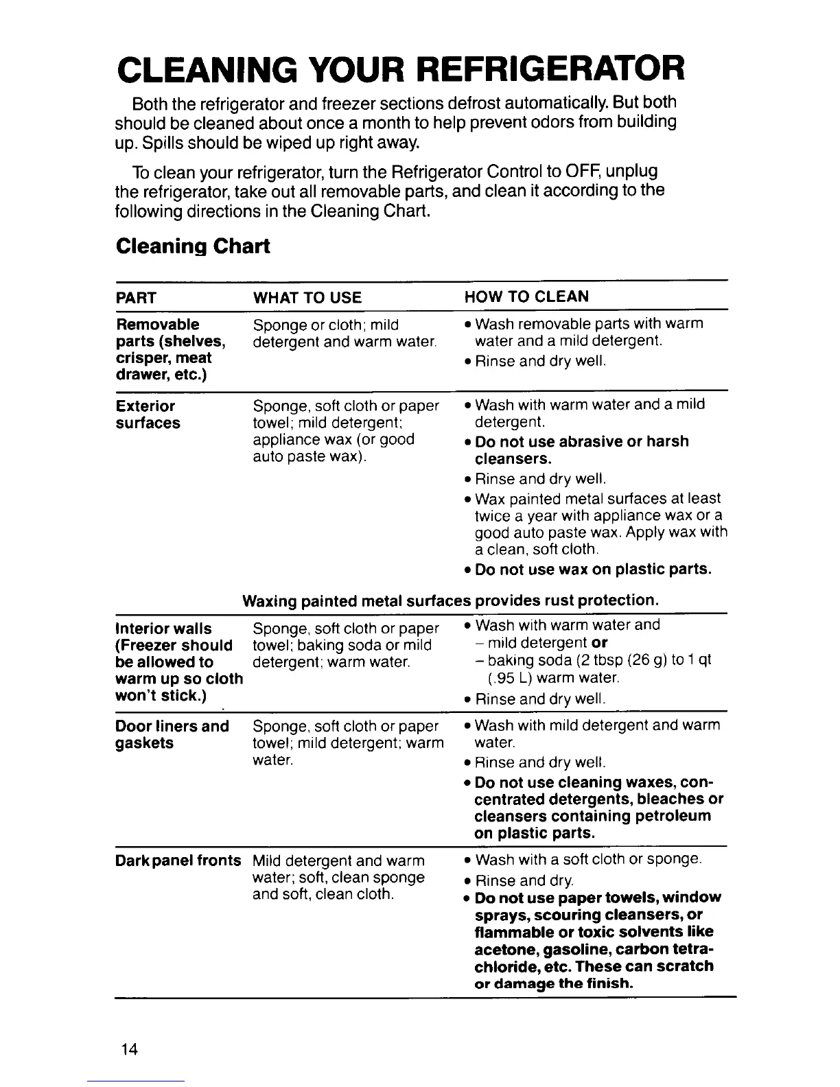 KitchenAid KSRF22D - CLEANING YOUR REFRIGERATOR; Removable parts (shelves, crisper, meat drawer, etc.); Exterior surfaces