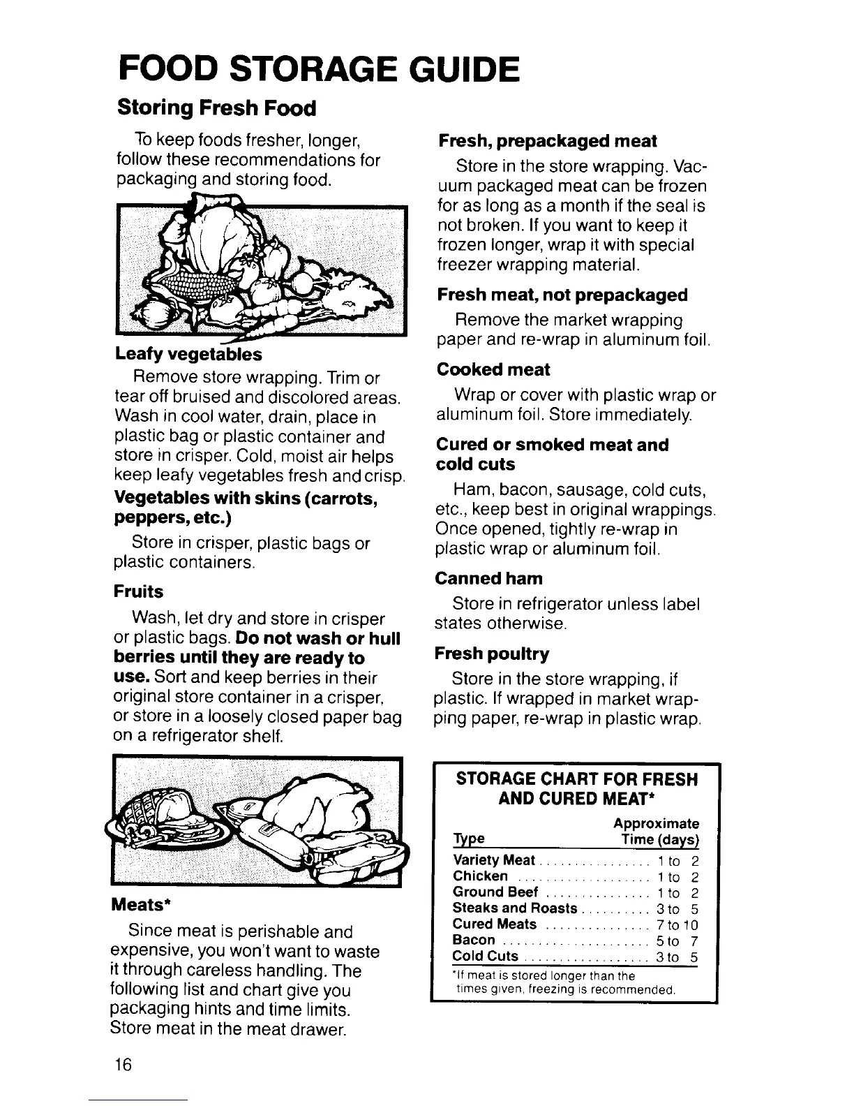KitchenAid KSRF22D - FOOD STORAGE GUIDE; Storing Fresh Food; Leafy vegetables; Fruits