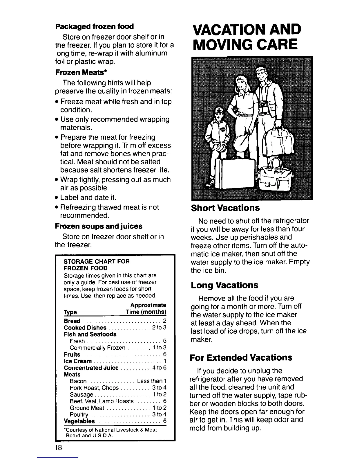KitchenAid KSRF22D - VACATION AND MOVING CARE; Short Vacations; Long Vacations; For Extended Vacations