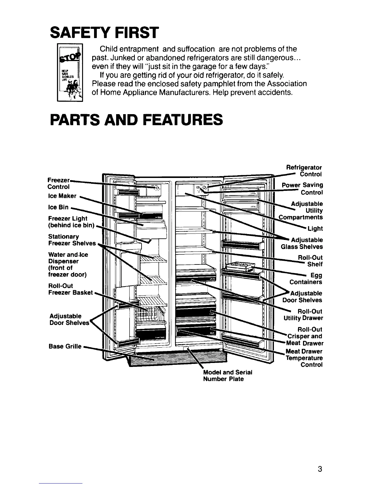 KitchenAid KSRF22D - SAFETY FIRST; PARTS AND FEATURES