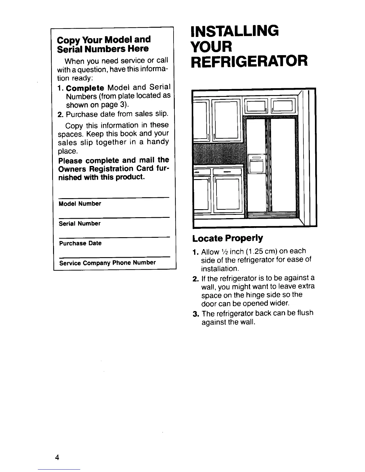 KitchenAid KSRF22D - INSTALLING YOUR REFRIGERATOR; Locate Properly