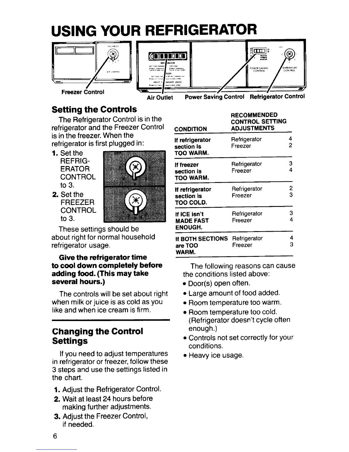 KitchenAid KSRF22D - USING YOUR REFRIGERATOR; Setting the Controls; Changing the Control Settings