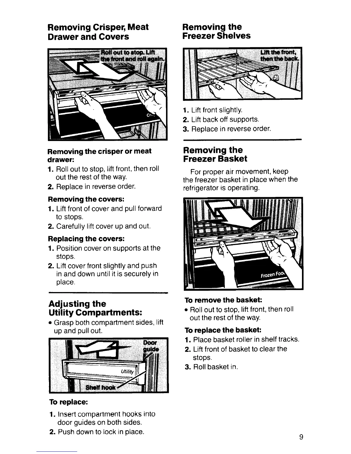 KitchenAid KSRF22D - Removing Crisper, Meat Drawer and Covers; Removing the Freezer Shelves; Removing the Freezer Basket