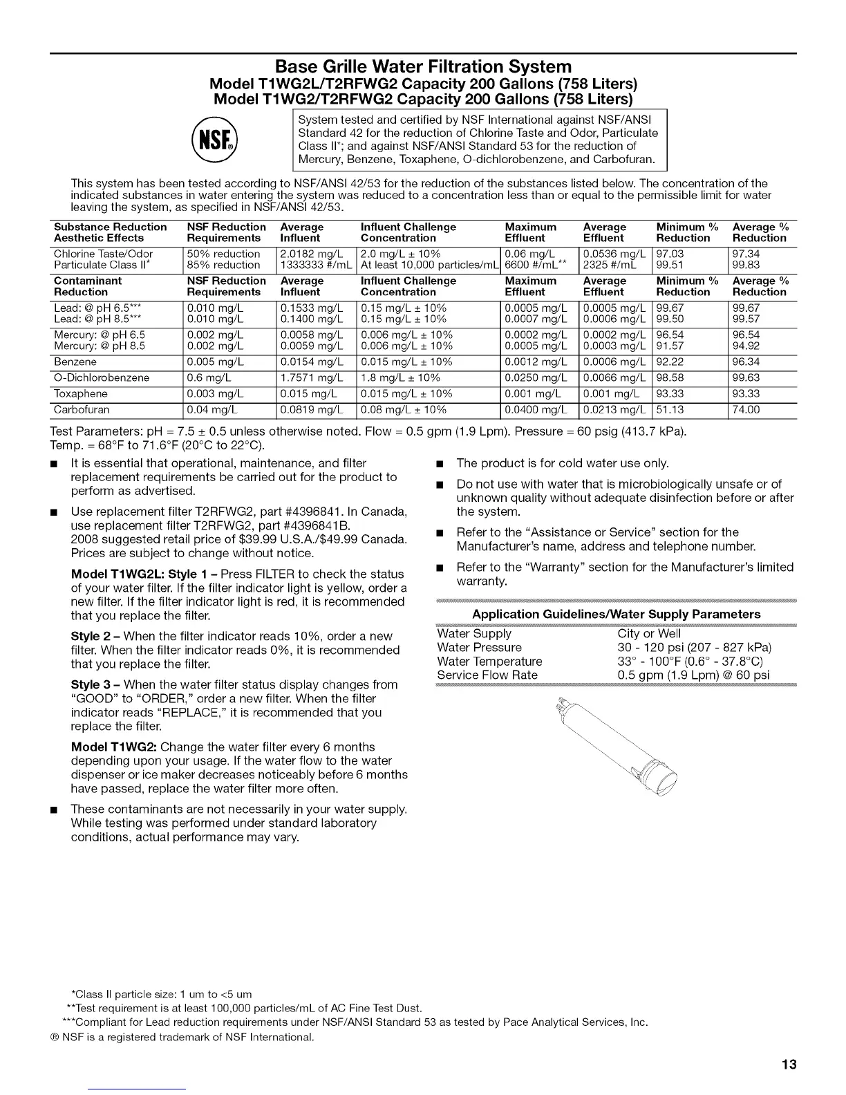 • Use replacement filter T2RFWG2, part #4396841. In Canada,
