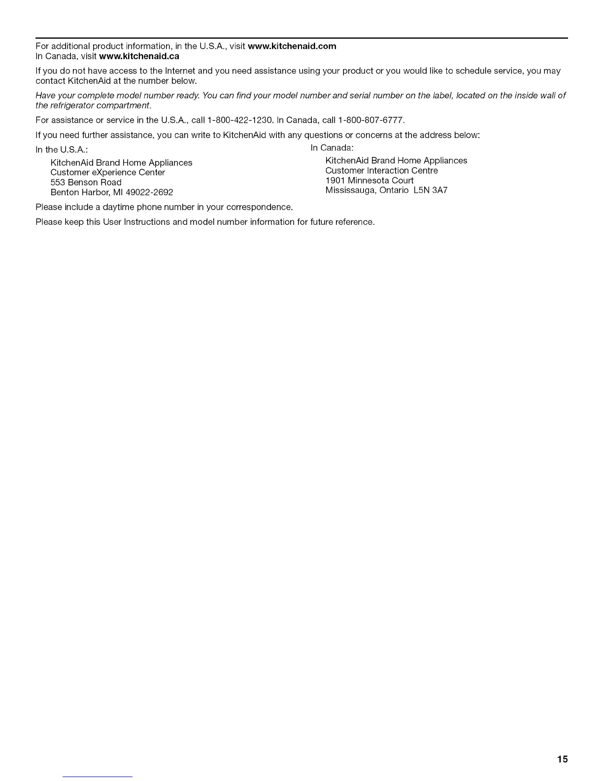 If you need further assistance, you can write to KitchenAid with any questions or concerns at the address below: