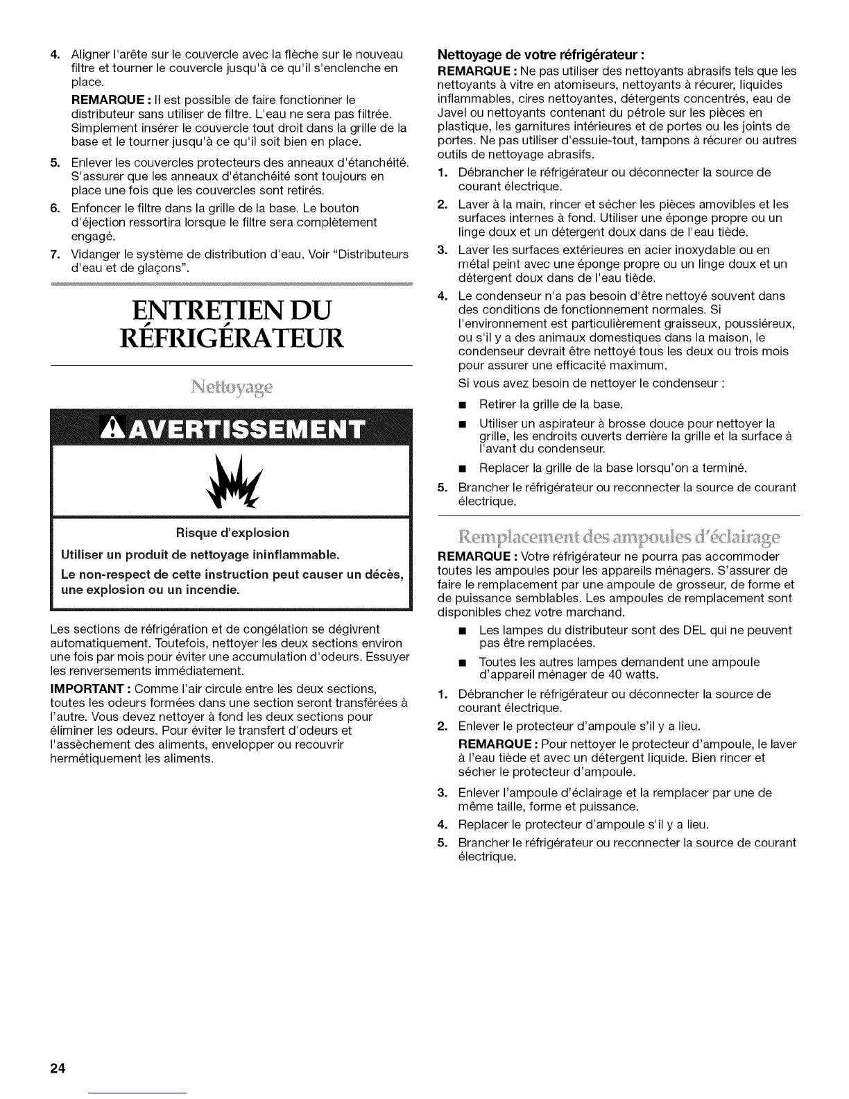 condenseur devrait etre nettoye tousles deux ou trois mois