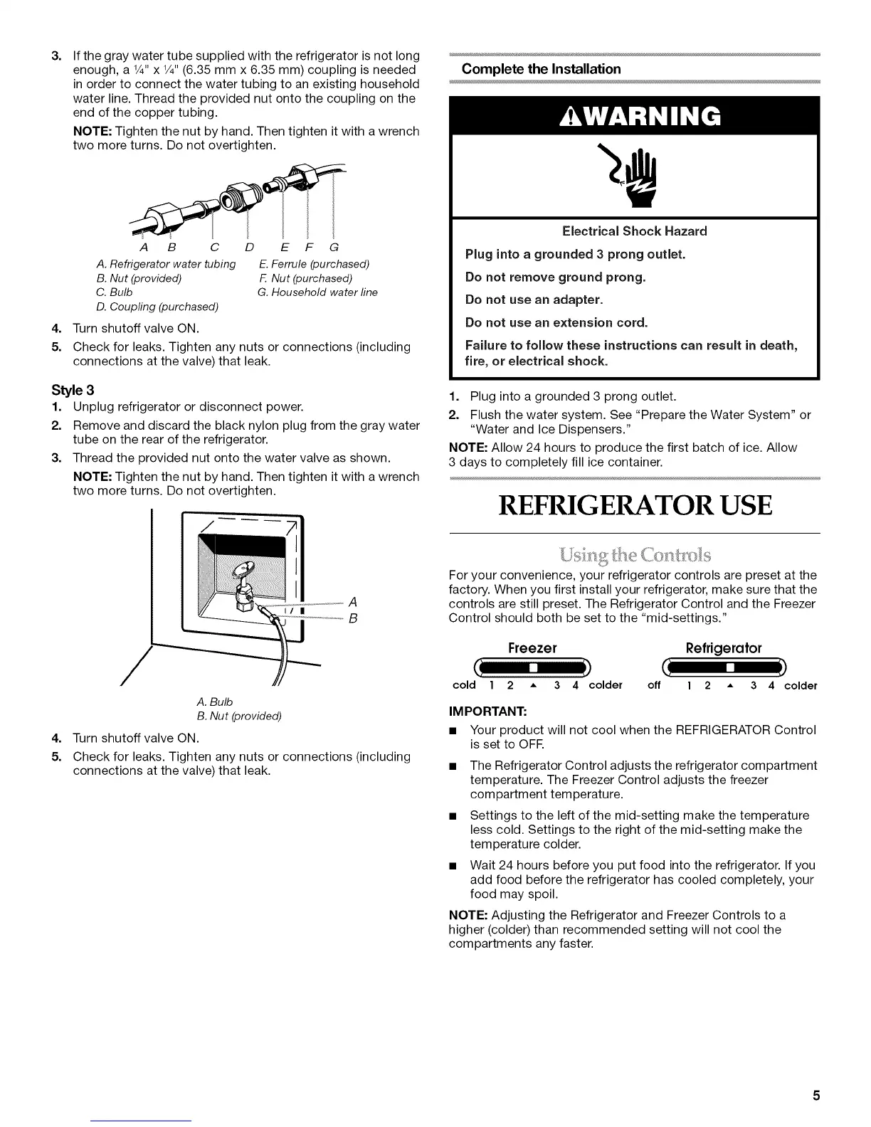 NOTE: Adjusting the Refrigerator and Freezer Controls to a