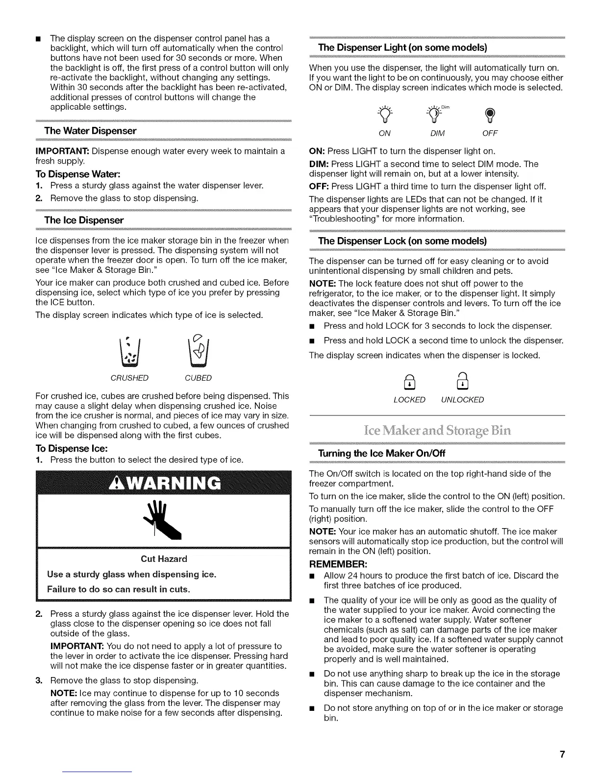 deactivates the dispenser controls and levers. To turn off the ice