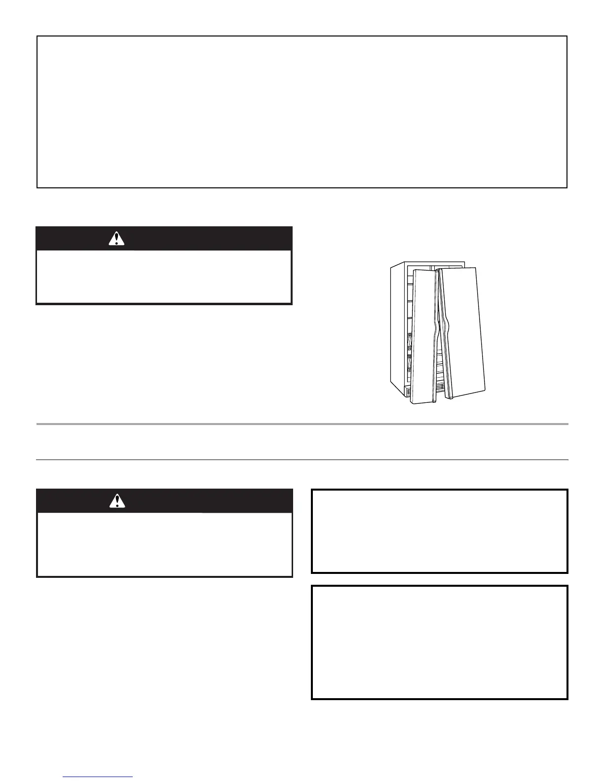 ■ Use two or more people to move and install refrigerator.