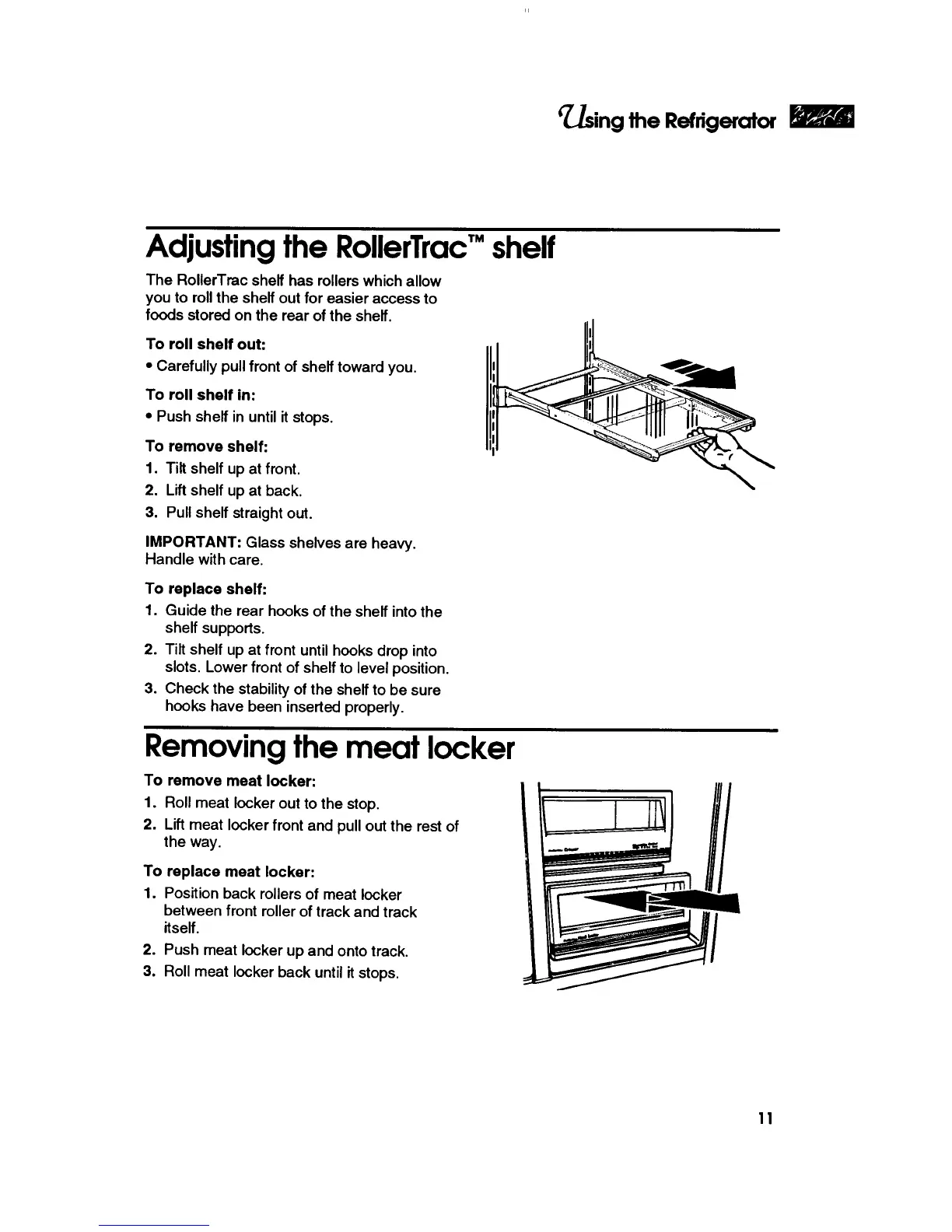 KitchenAid KSRS25F - Advanced Shelf and Locker Operations; RollerTrac Shelf Functionality; Meat Locker Removal and Replacement