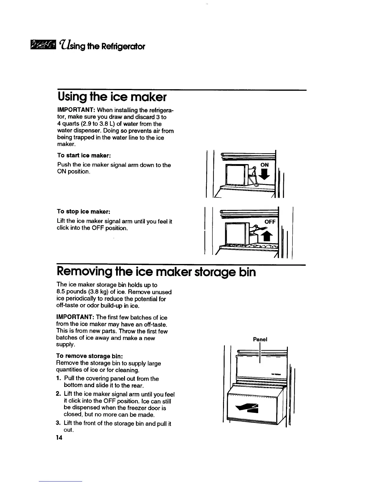 KitchenAid KSRS25F - Ice Maker System Operation; Ice Maker Start and Stop Procedures; Ice Maker Storage Bin Maintenance