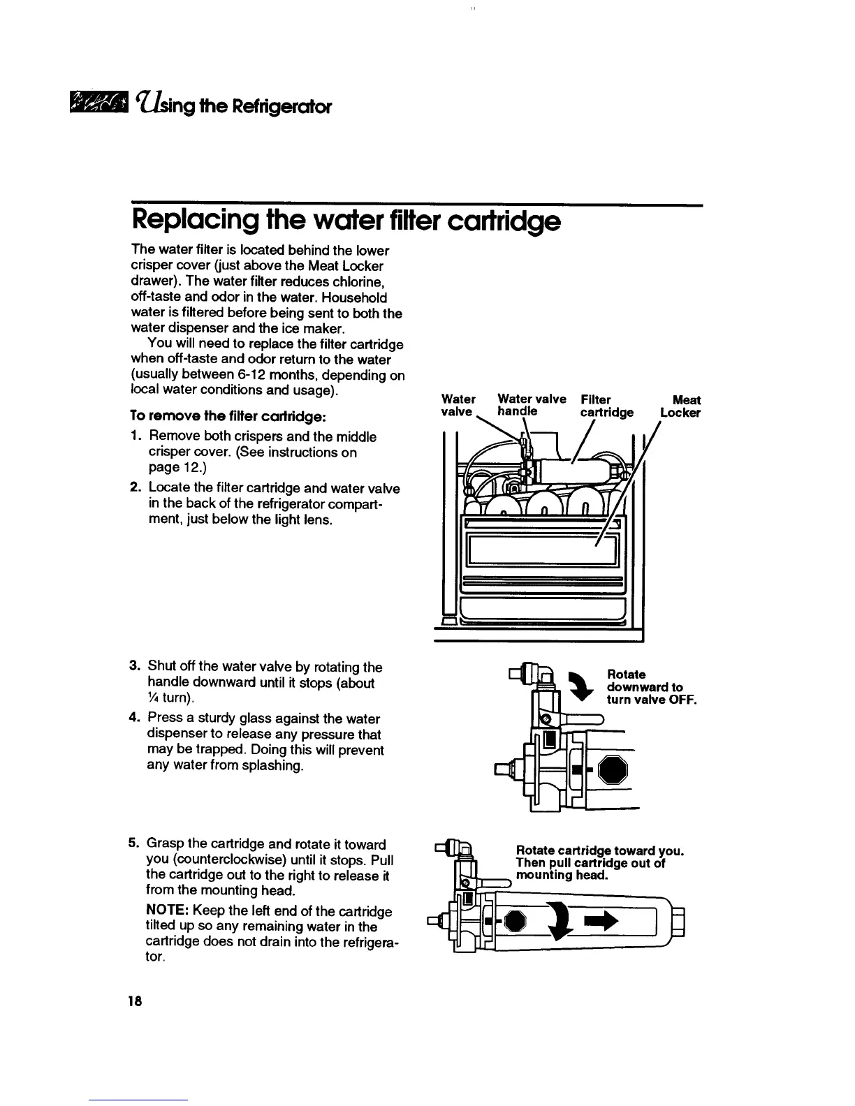 KitchenAid KSRS25F - Water Filter Cartridge Replacement Guide; Removing the Old Water Filter