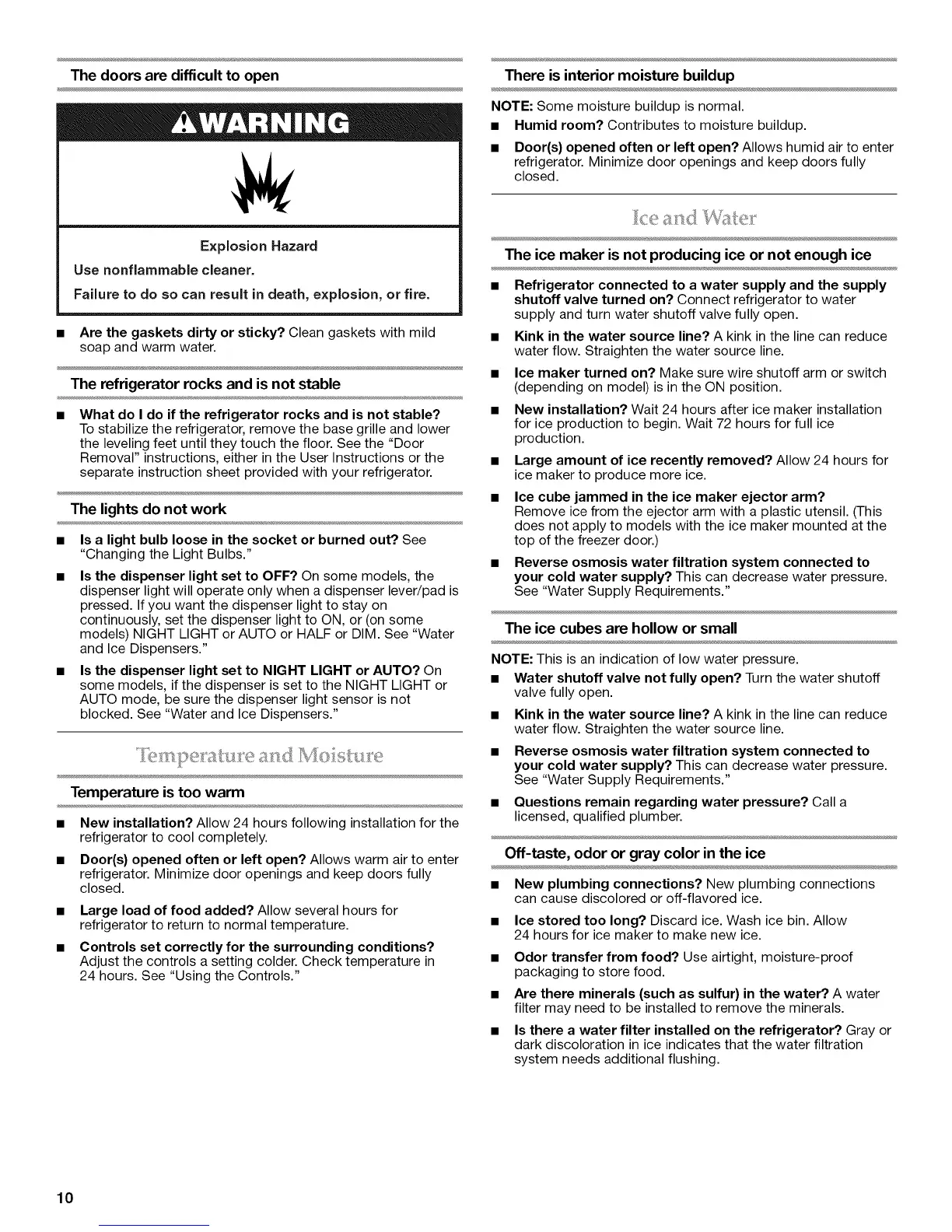 blocked. See "Water and Ice Dispensers."