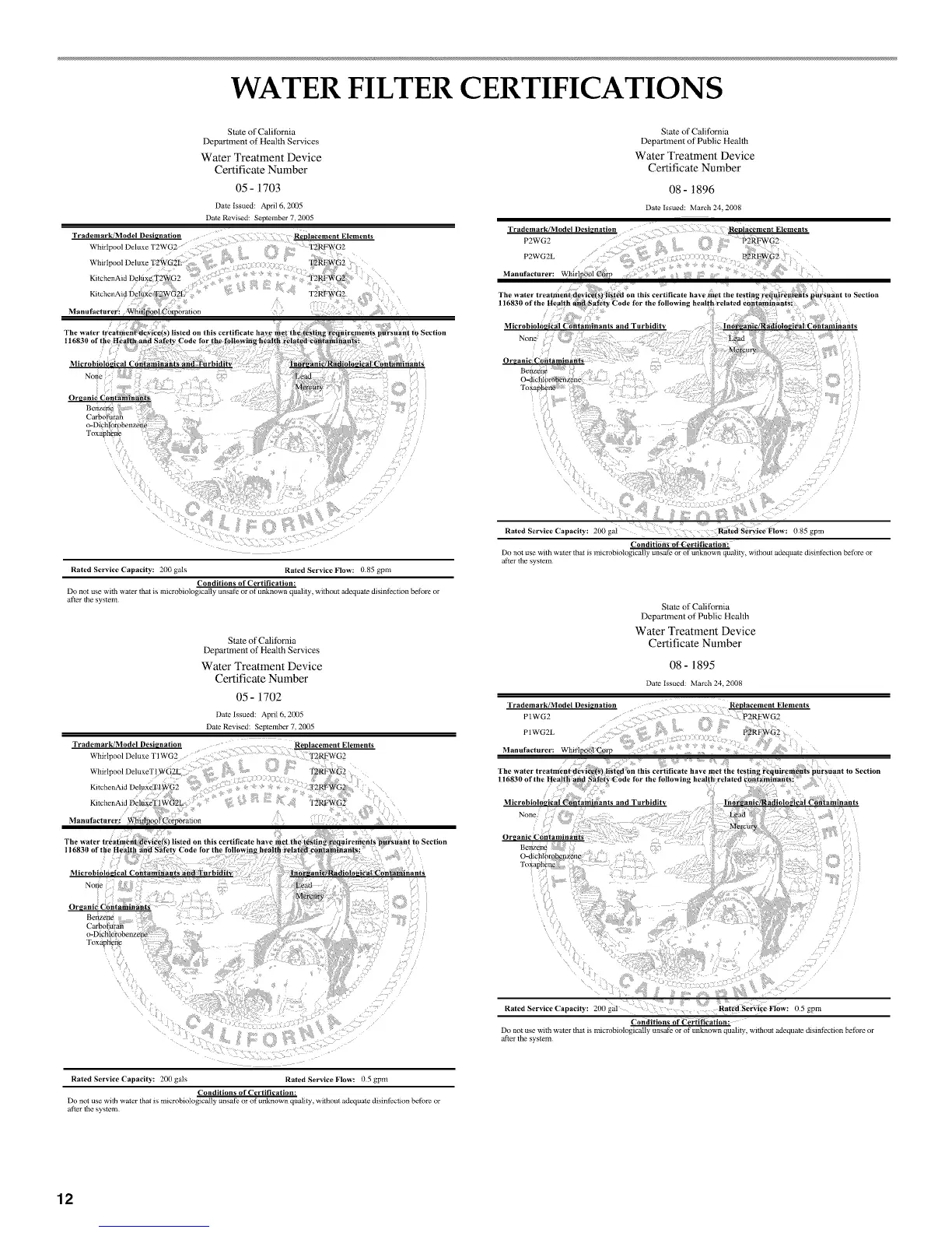 "lhe water treatment device, s) listed on this certificate have met the testing requirements pursuant to Section
