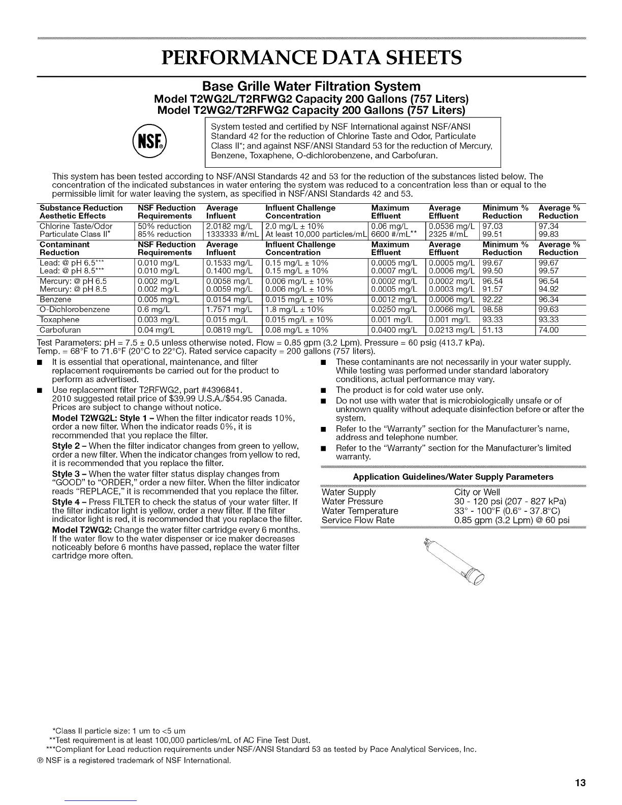 Model T2WG2L: Style 1 - When the filter indicator reads 10%,