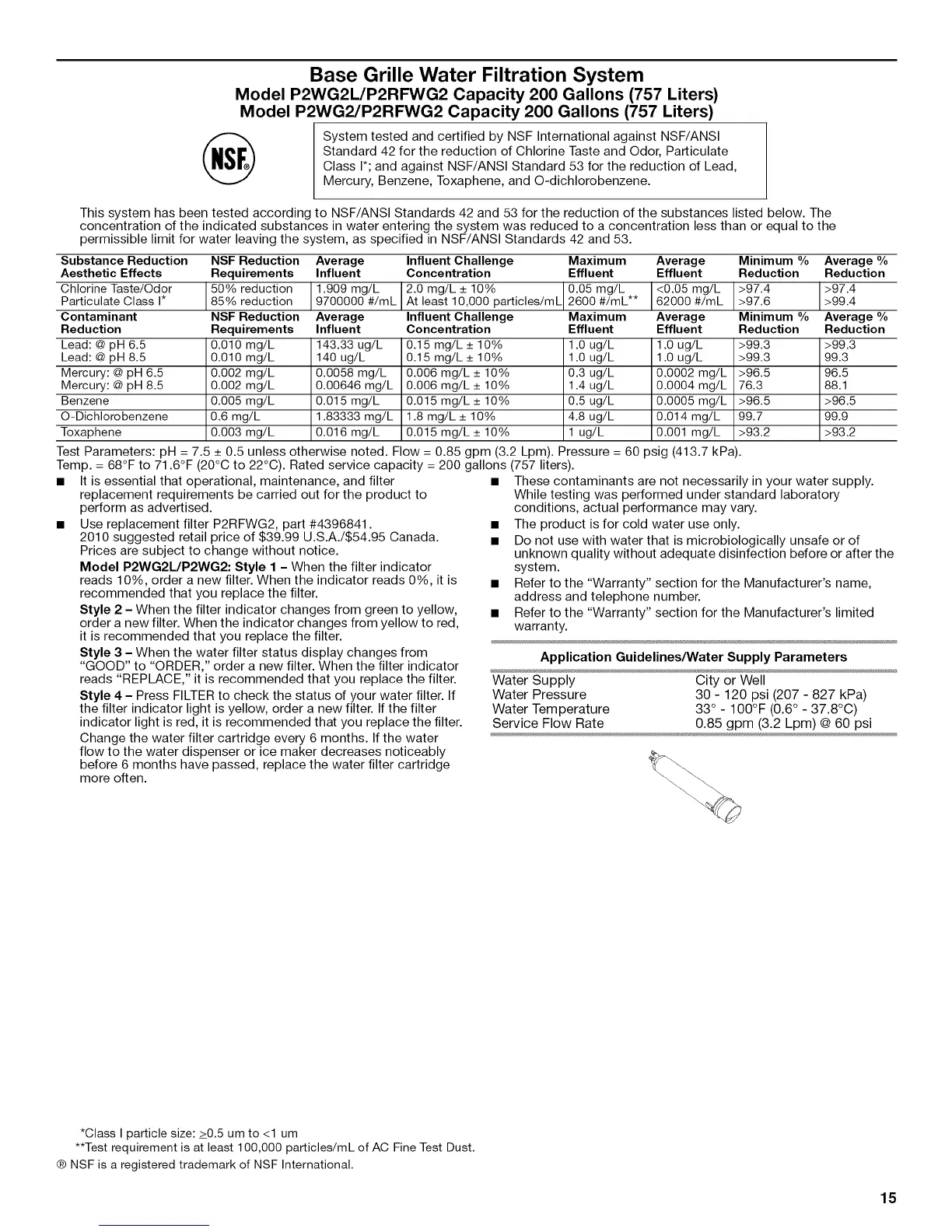 System tested and certified by NSF International against NSF/ANSI