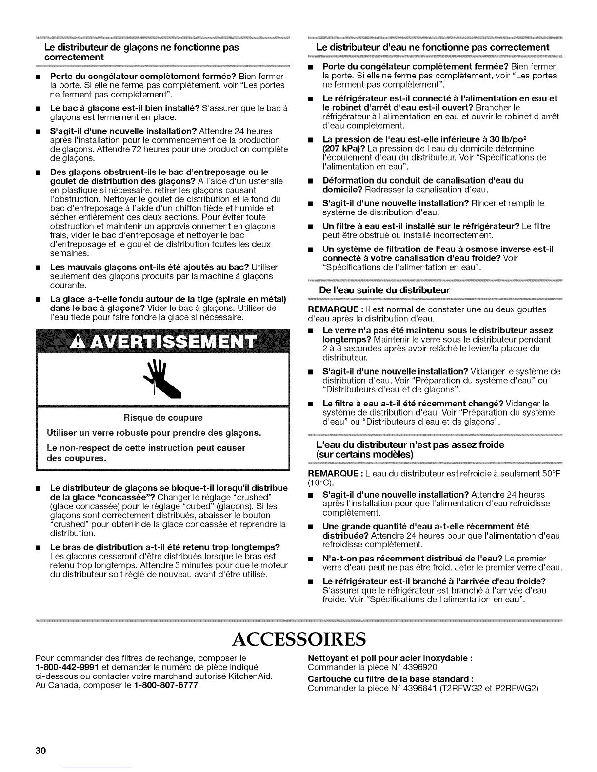 ci-dessous ou contacter votre marchand autorise KitchenAid.