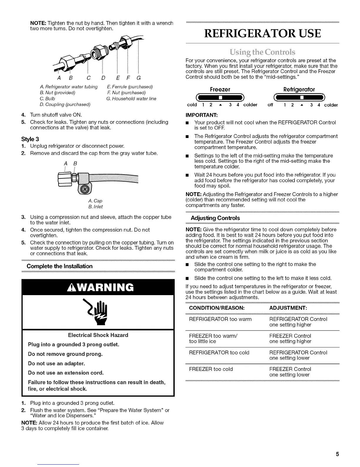 NOTE: Adjusting the Refrigerator and Freezer Controls to a higher