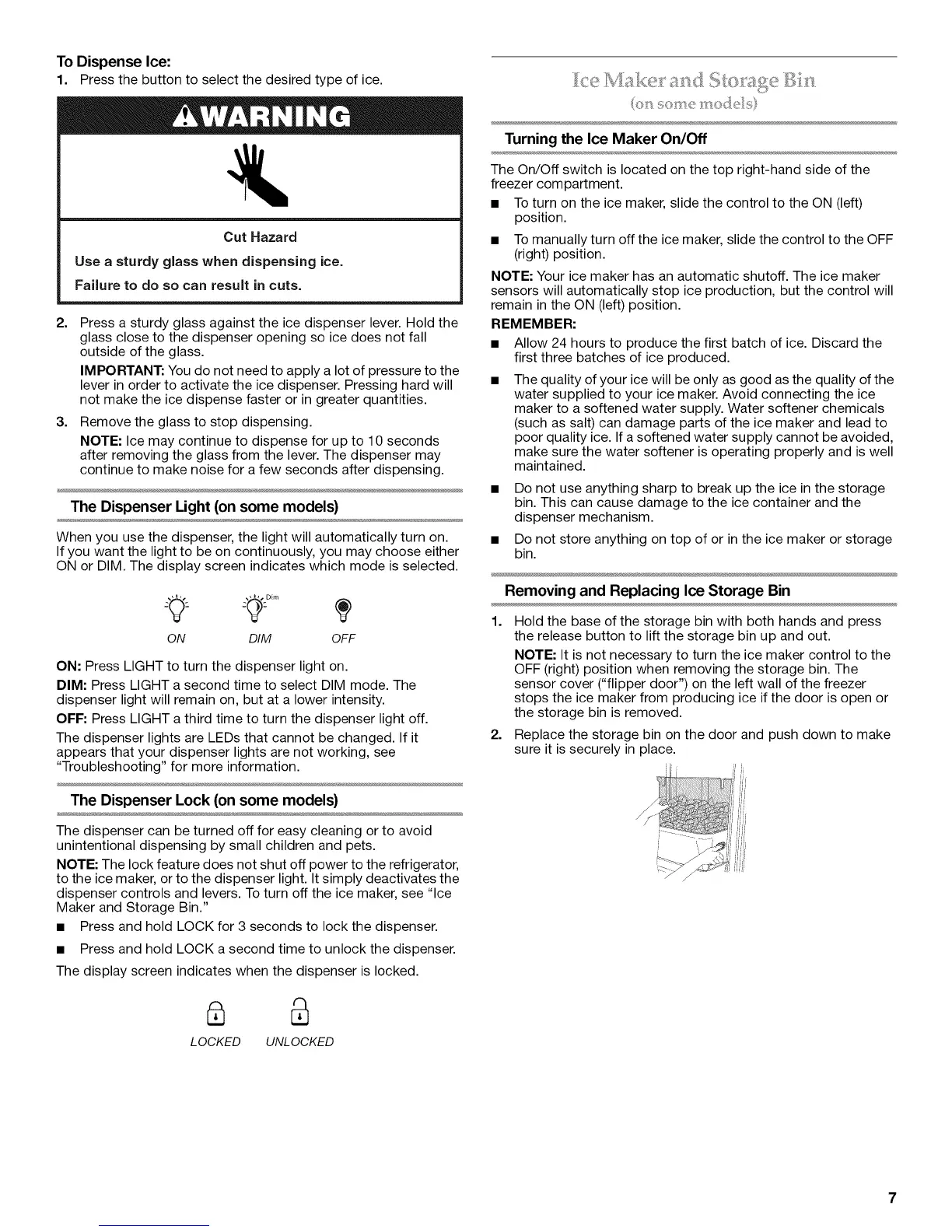 dispenser controls and levers. To turn off the ice maker, see "Ice