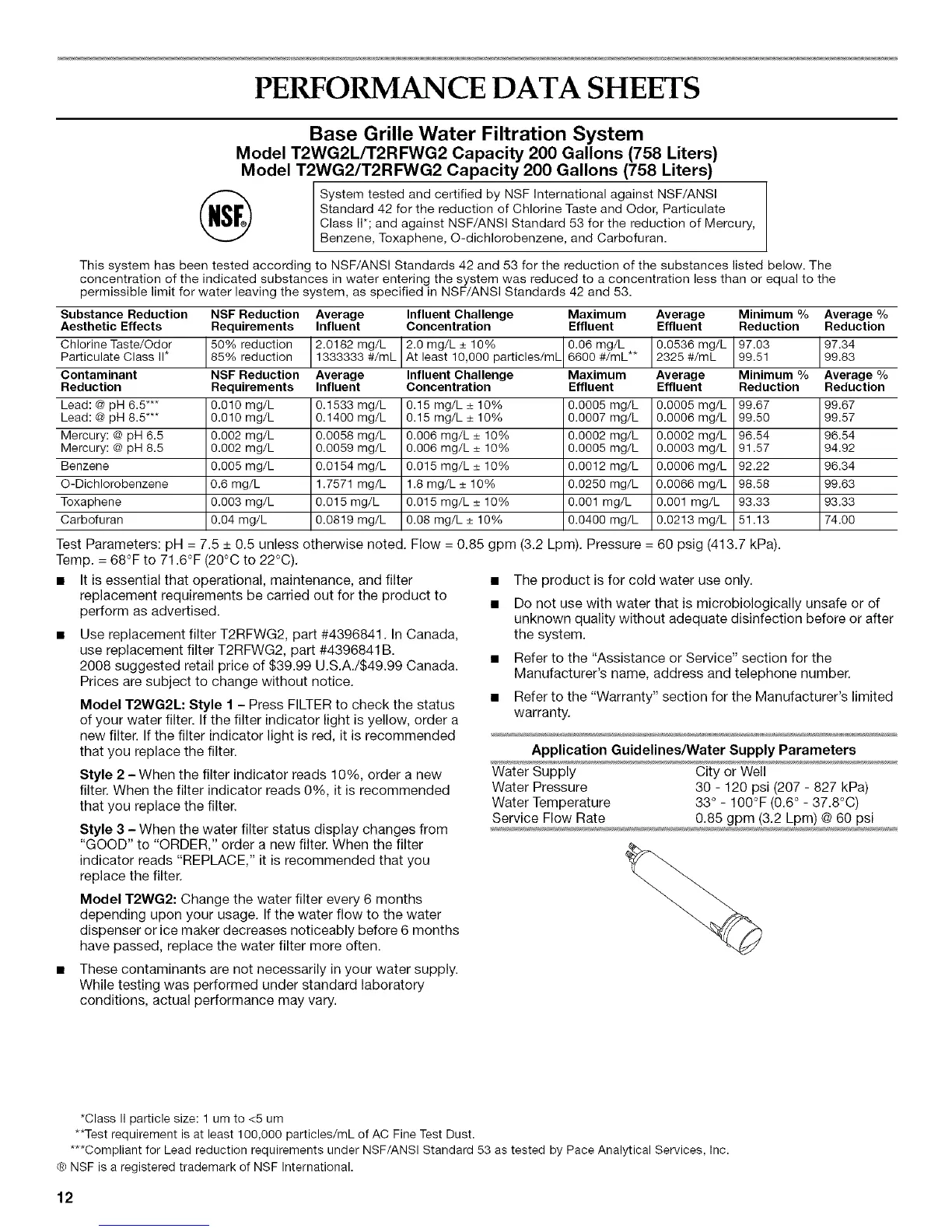 Use replacement filter T2RFWG2, part #4396841 In Canada,